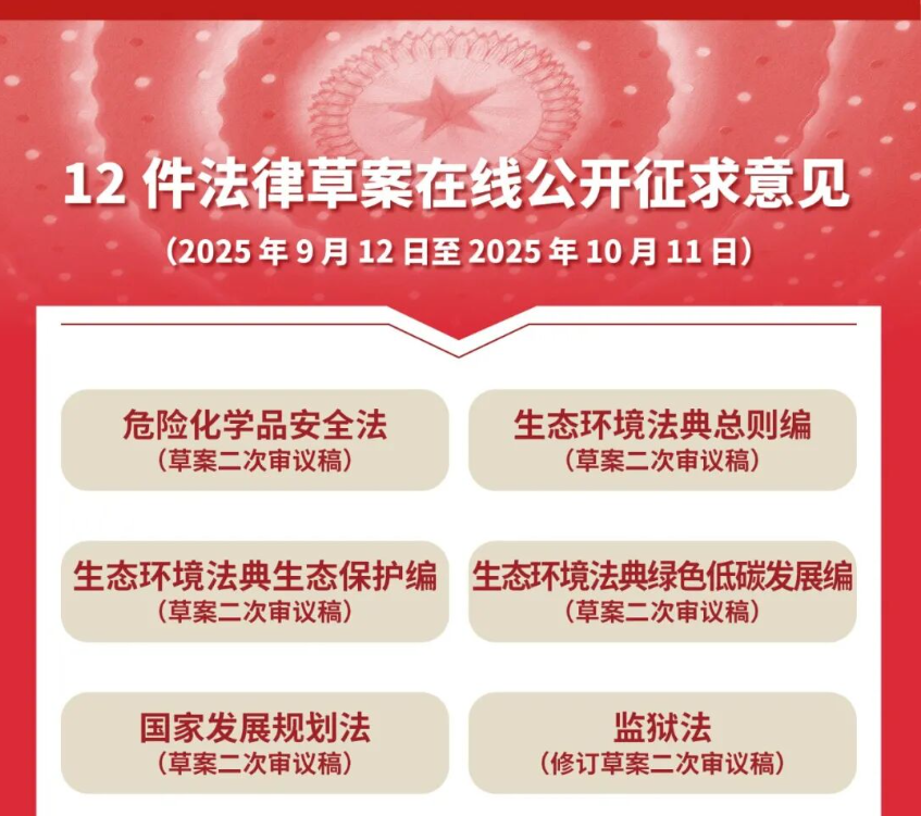 9ÔÂ12ÈÕÆð£¬12¼þ·¨Âɲݰ¸¹«¿ªÕ÷ÇóÒâ¼û£¬½ØÖ¹ÈÕÆÚΪ2025Äê10ÔÂ11ÈÕ¡£